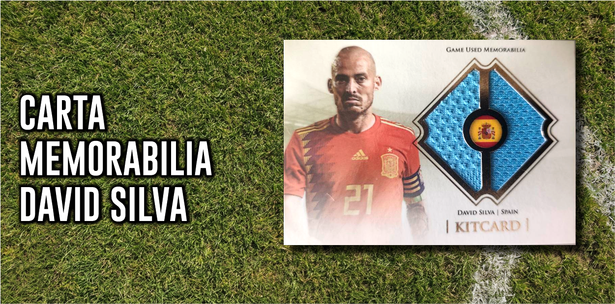 Carta Futera Memorabilia de David Silva que incluye doble fragmento de camisetas, usadas por el jugador con el Manchester City en 2014 y 2017.
